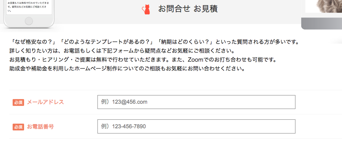 お客様がホームページを見てメールでお問い合わせを入れる場合、お問い合わせフォームを用意しておきましょう。